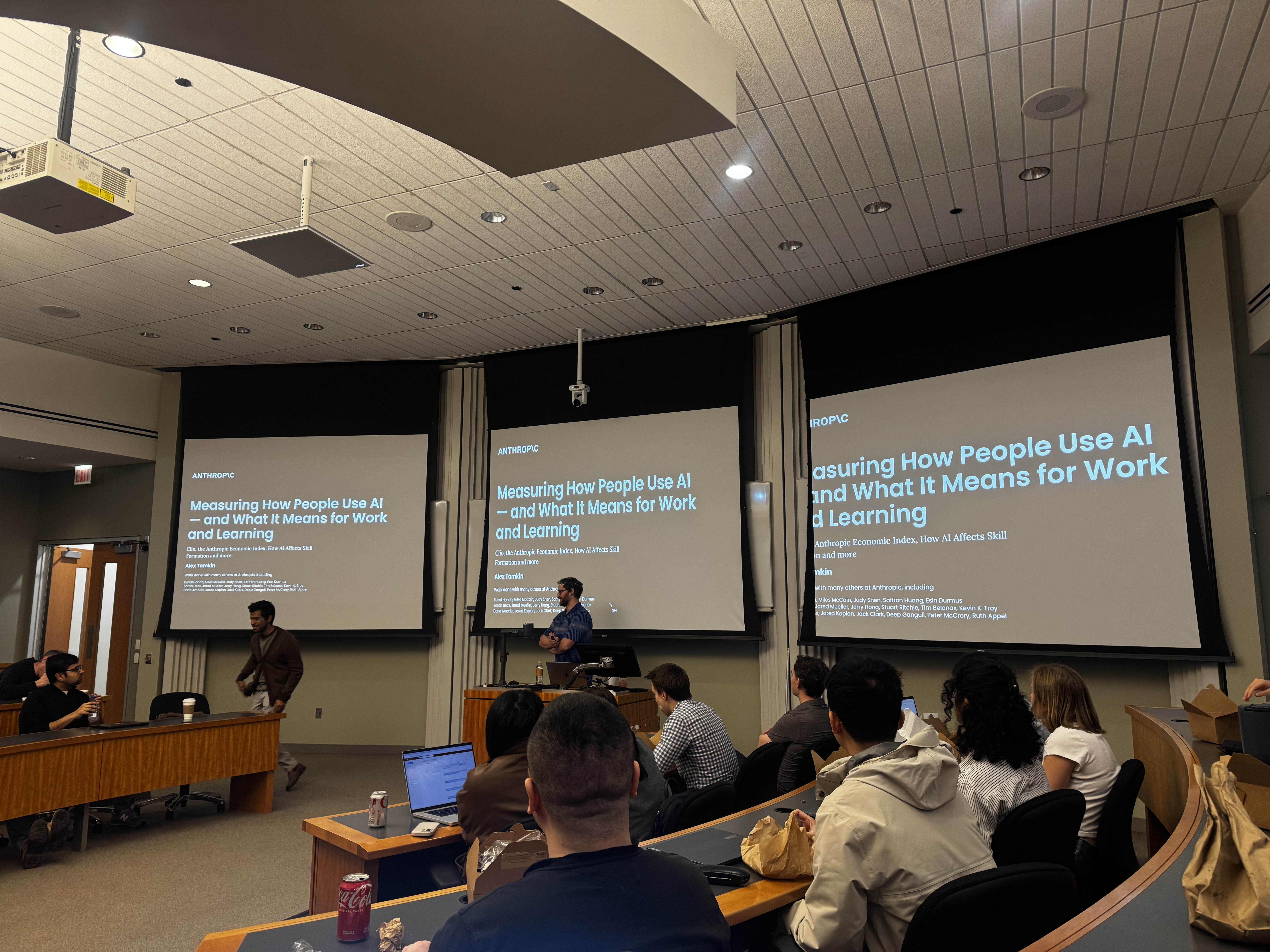 Today, Alex Tamkin from Anthropic comes over to Booth to talk about Anthropic’s Economic Index. The Booth lecture room is overflowed with enthusiastic audience: