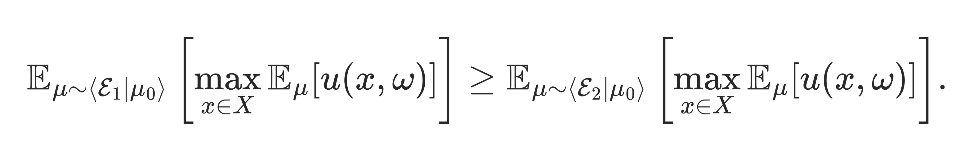 Let $\Omega =$ state space, define state-dependent utility function $u : X \times \Omega \to \mathbb{R}$ (utility depends on both action $x$ and state $\omega$). A belief, denoted as $\mu$ is a probability distribution $\mu \in \Delta \Omega$.