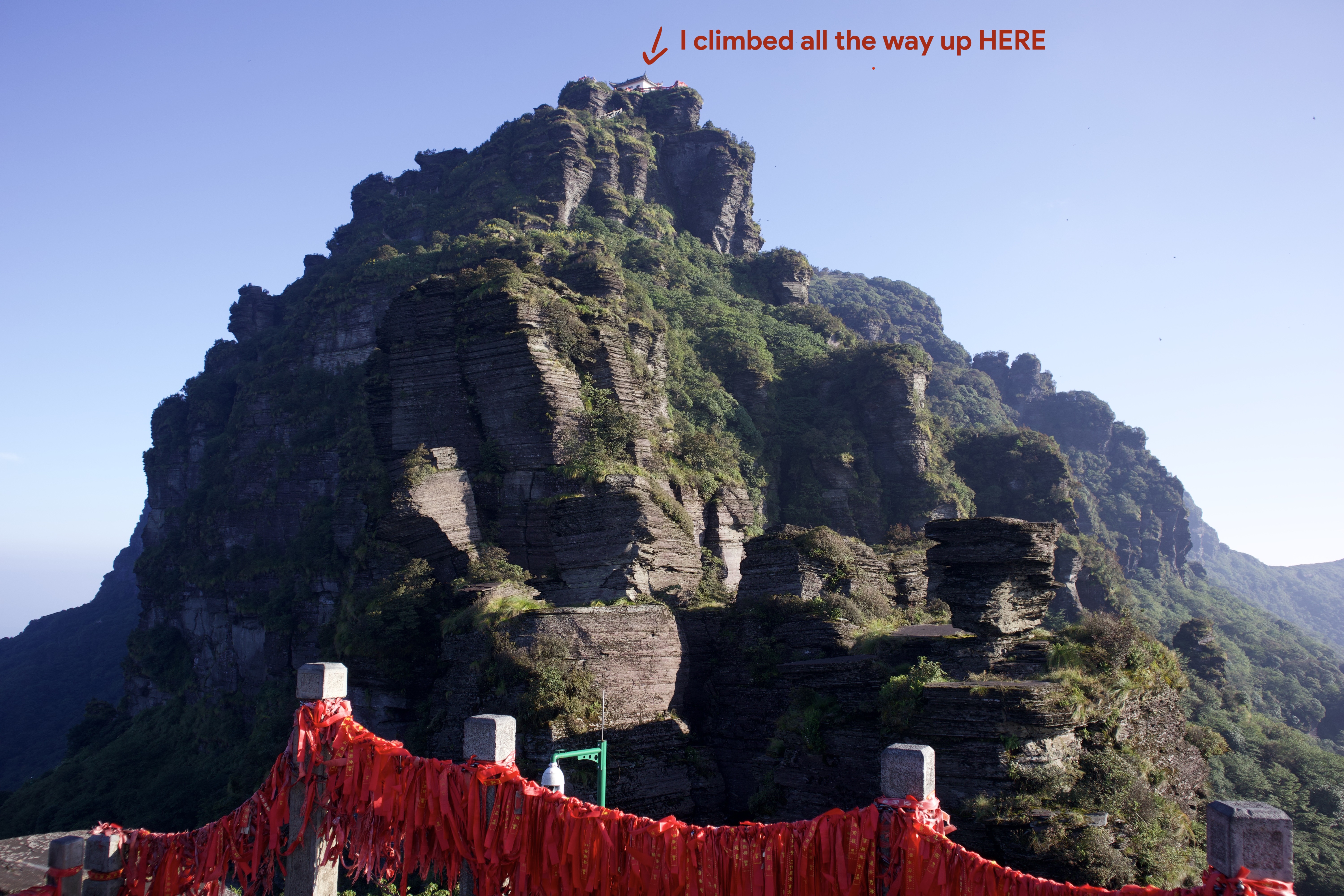 Turns out, Fanjing Mountain (2,336m) was also there—when we’ve paid the sunk cost of an expensive ticket and the cable took us to the foot of the mountain—so up I went.
