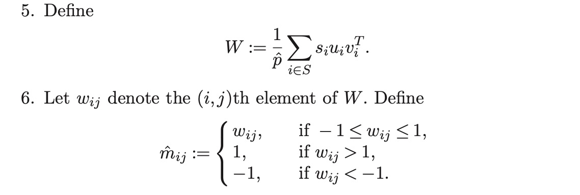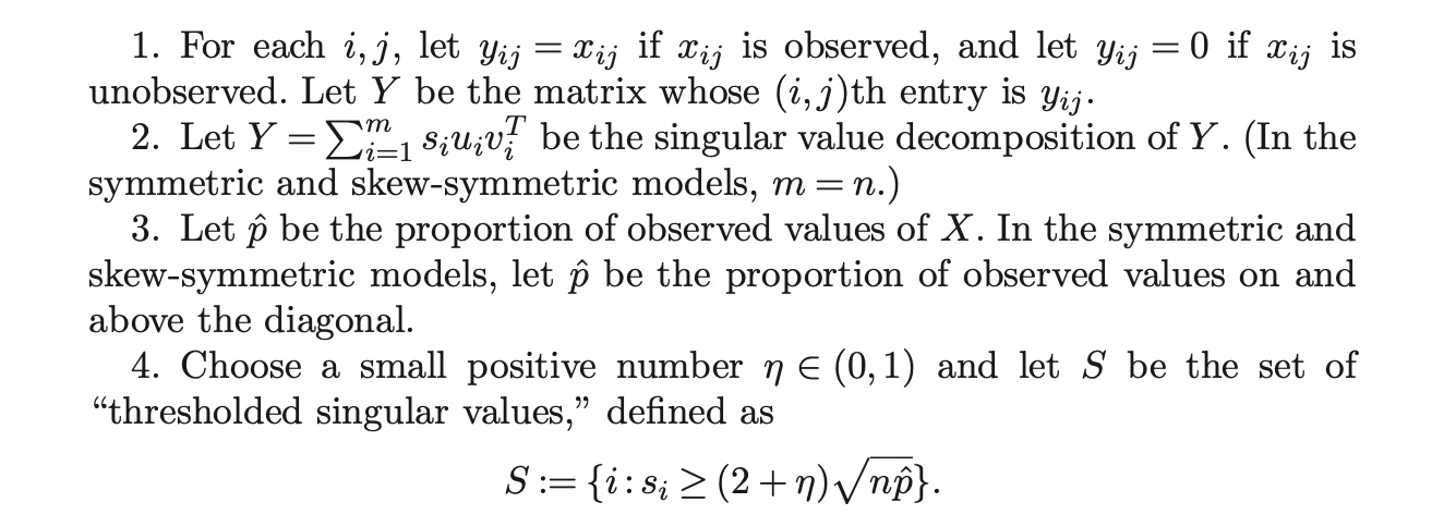 The Universal Singular Value Thresholding (USVT) estimator are: