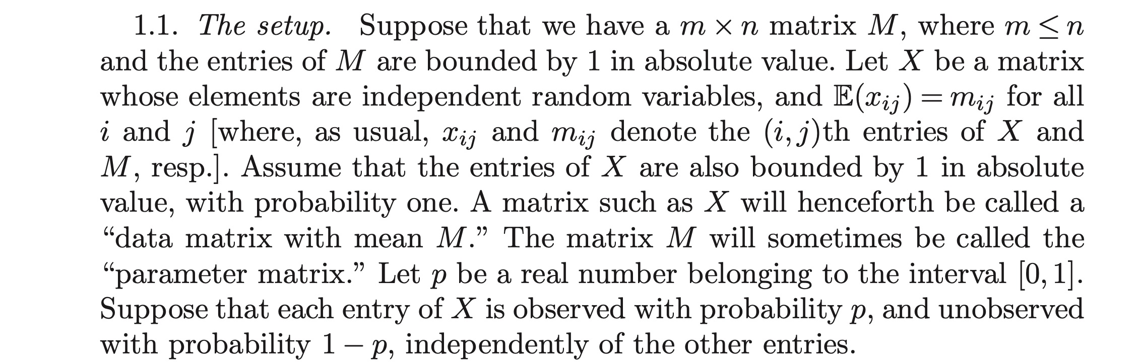 First, a simple step to regulate how many entries exactly did we observe: the proportion of observed entries, according to a beautiful Talagrand concentration inequality, will be centered around $p$ with high probability. So we might as well work with as if exactly $p$ of the entries are observed (by adjusting the bounding constants if necessary).