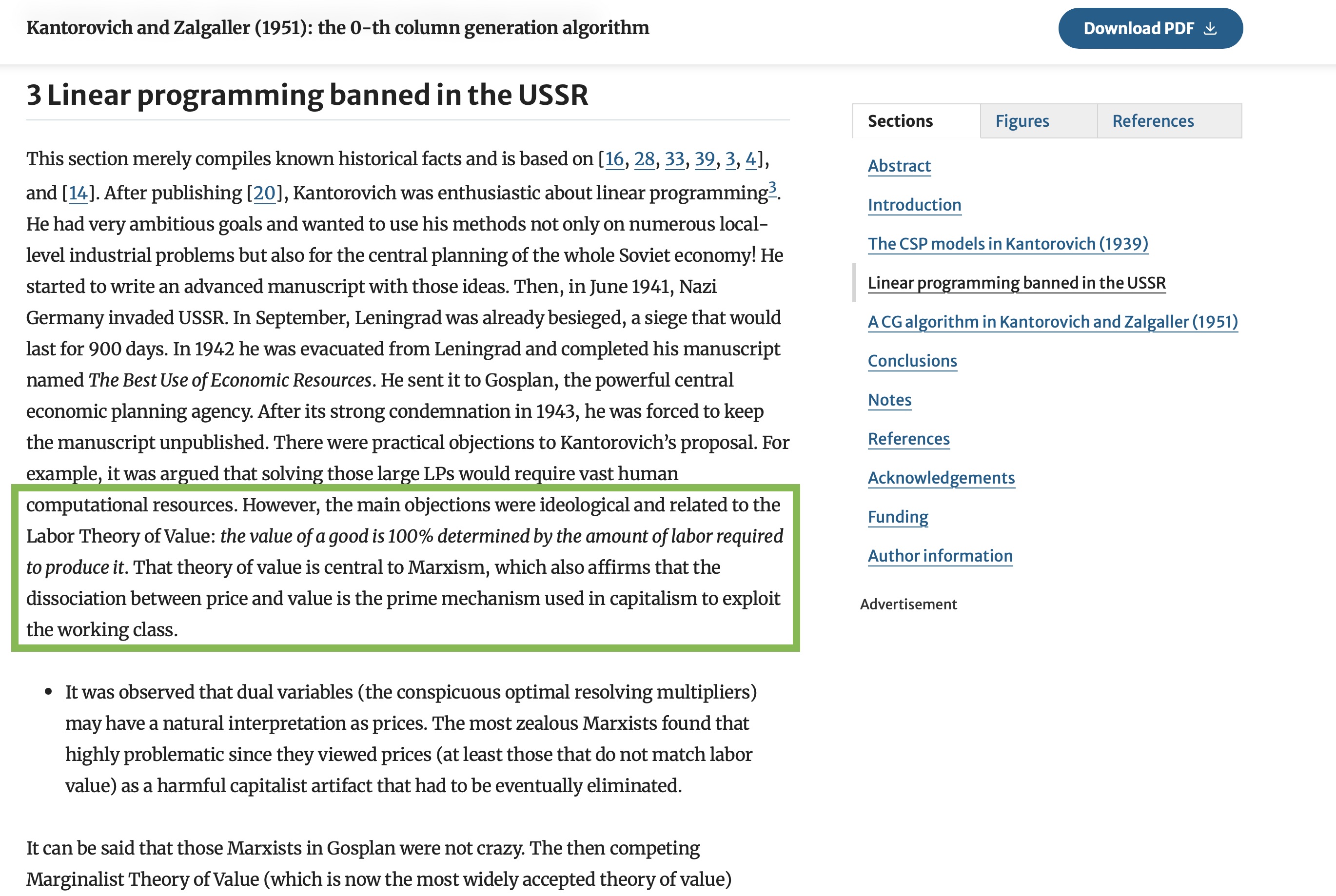 This article probes the origins of the Column Generation technique. It begins with Kantorovich’s classic 1939 work, correcting widespread misconceptions about his contributions to the Cutting Stock Problem. It then brings to light Kantorovich and Zalgaller’s lesser-known 1951 book, which is revealed to contain a complete Column Generation algorithm. The article also places these contributions in the context of the turbulent USSR’s political and ideological environment, essential for a deeper understanding of their significance.